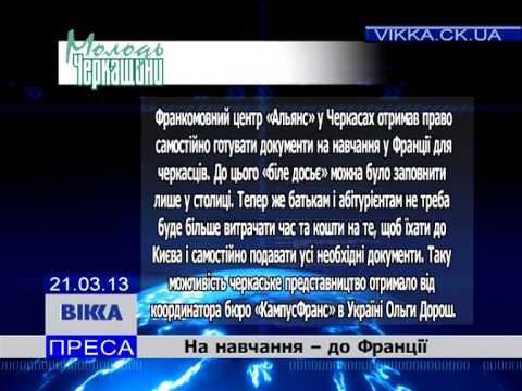 Для навчання у Франції документи можна подавати в Черкасах, пише «Молодь Черкащини». Франкомовний центр «Альянс» у Черкасах отримав право самостійно готувати документи на навчання у Франції для черкасців. До цього «біле досьє» можна було заповнити лише у столиці. Тепер же батькам і абітурієнтам не треба буде більше витрачати час і кошти на те, щоб їхати до Києва та самостійно подавати всі необхідні документи. Таку можливість черкаське представництво отримало від координатора бюро «КампусФранс» в Україні Ольги Дорош, котра провела семінар для освітян і представників міської влади.