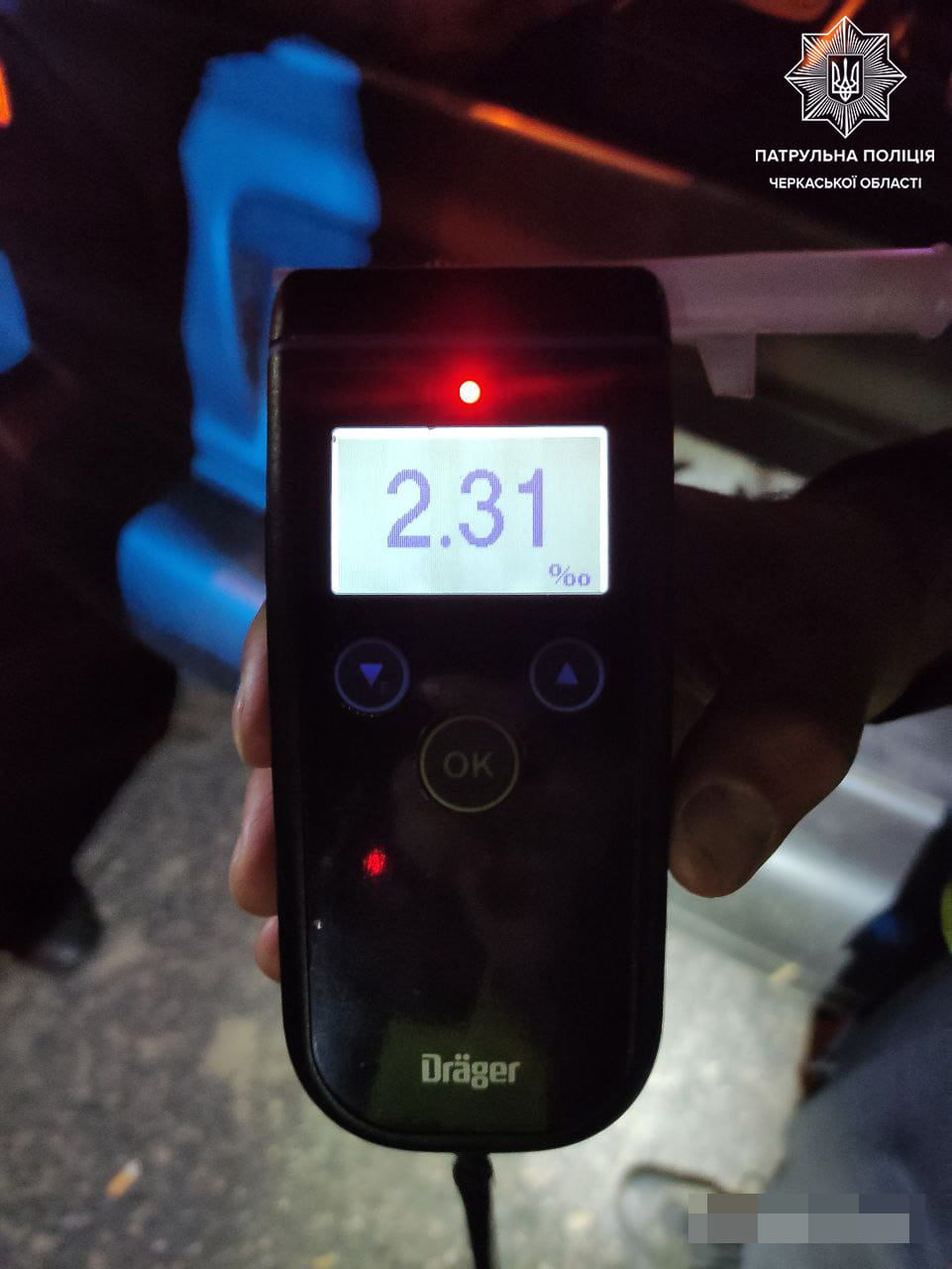 Під час спілкування поліцейські виявили в керманича автомобіля Daewoo ознаки алкогольного сп’яніння та запропонували пройти відповідний огляд за допомогою приладу Драгер. Результат — 2,31 проміле.