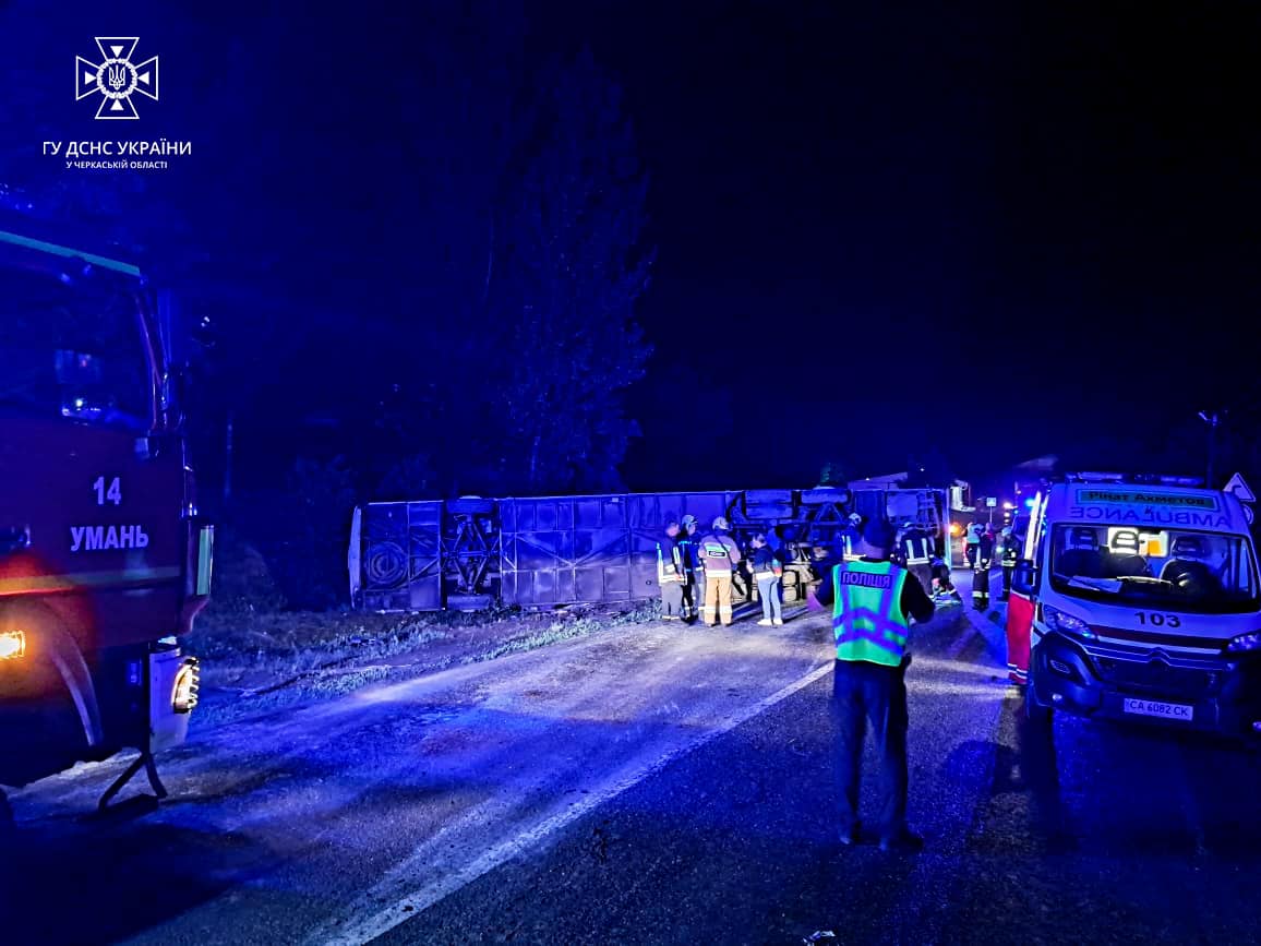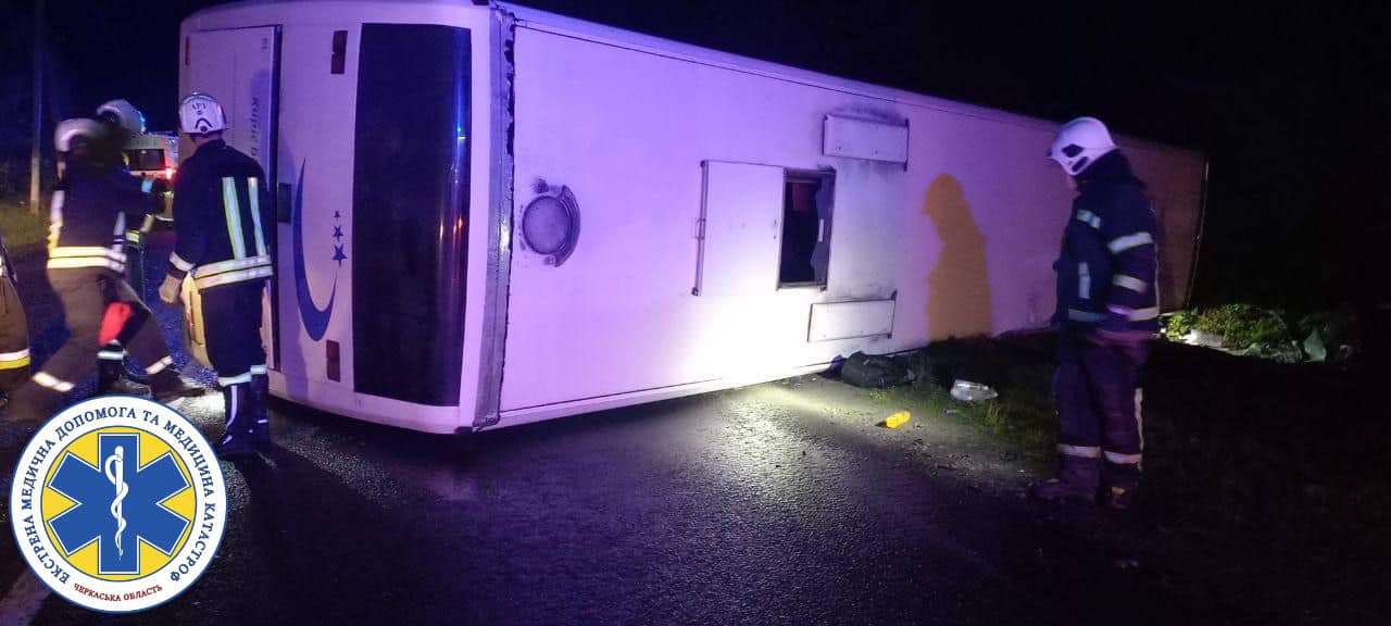Як повідомила Поліція Черкащини, на момент дорожньо-транспортної пригоди в автобусі перебував 41 пасажир. Попередньо з’ясовано, що 56-річний водій транспортного засобу «EOS» на заокругленій ділянці дороги вліво не обрав безпечної швидкості та не врахував дорожньої обстановки. Внаслідок автобус виїхав за межі правого краю проїзної частини дороги та перекинувся.