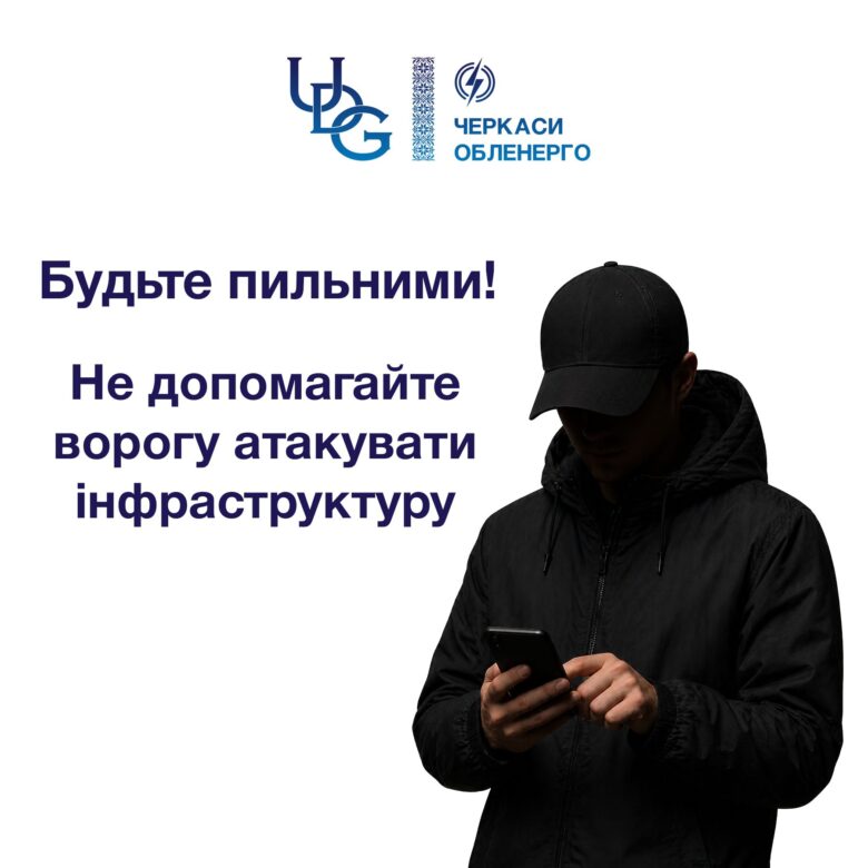 АТ «ЧЕРКАСИОБЛЕНЕРГО» закликає жителів області бути пильними і повідомляти про будь-які спроби російських спецслужб отримати інформацію про розташування об’єктів або роботу енергетиків. Якщо до Вас звертаються із сумнівними пропозиціями, Ви побачили підозрілі предмети та осіб або ж отримали інформацію про діяльність російських спецслужб, сторінки в інтернеті та соцмережах, які вони використовують для вербування, повідомляйте про це СБУ: Чат-бот «Спали» ФСБшника» – t.me/spaly_fsb_bot, тел.: 15-16.