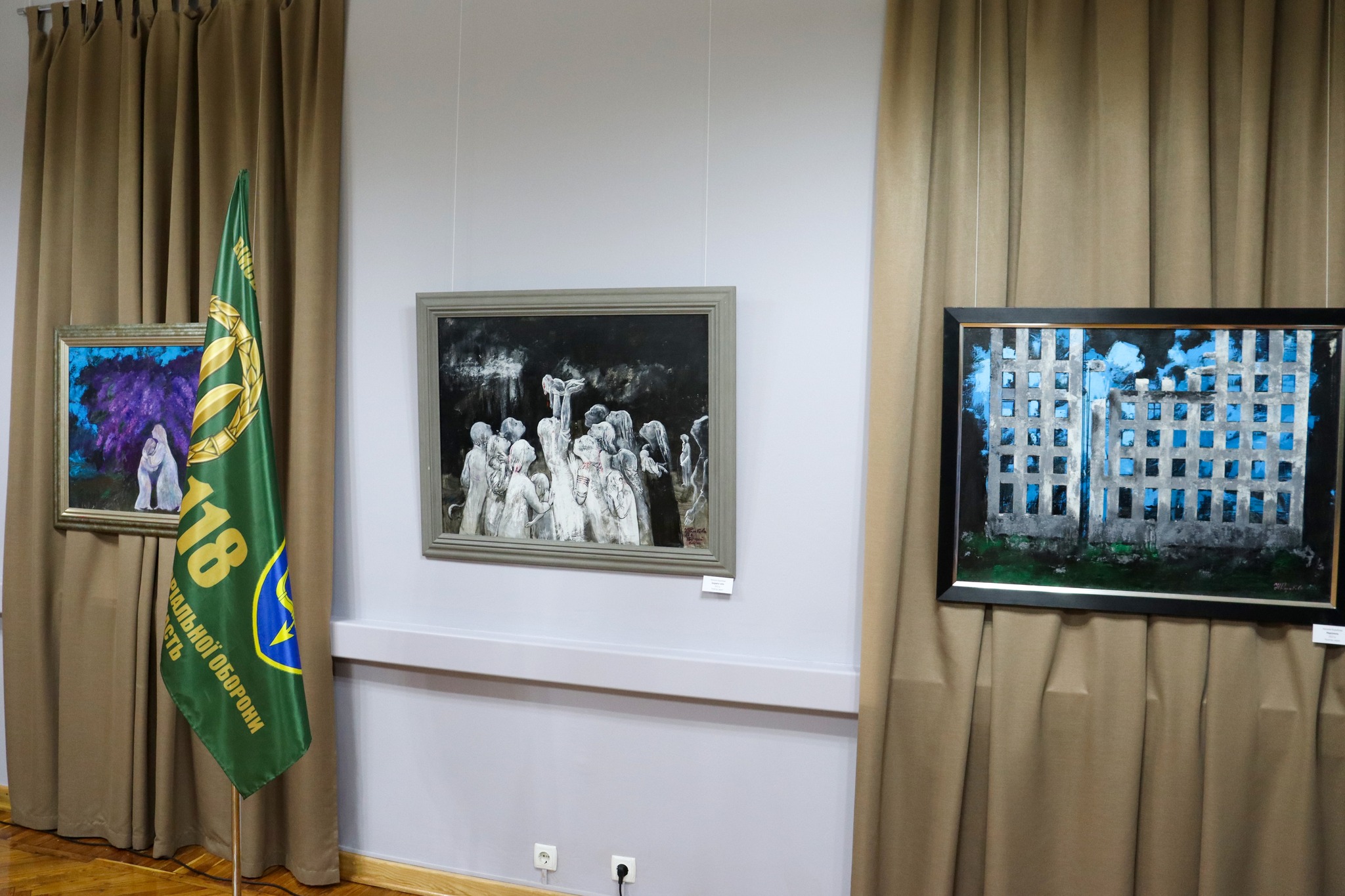 Виставка об’єднала роботи українських митців, створені переважно у 2022 році — у перший, найболючіший період повномасштабного вторгнення. Це полотна, народжені з гострої особистої реакції, з болю, тривоги, нескінченних питань і внутрішнього спротиву.