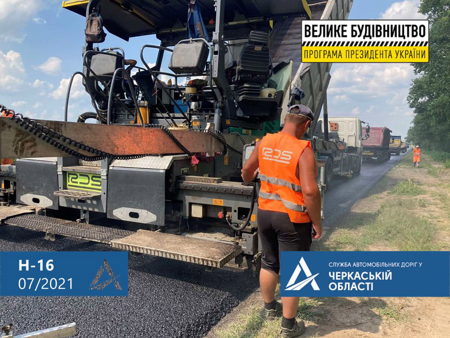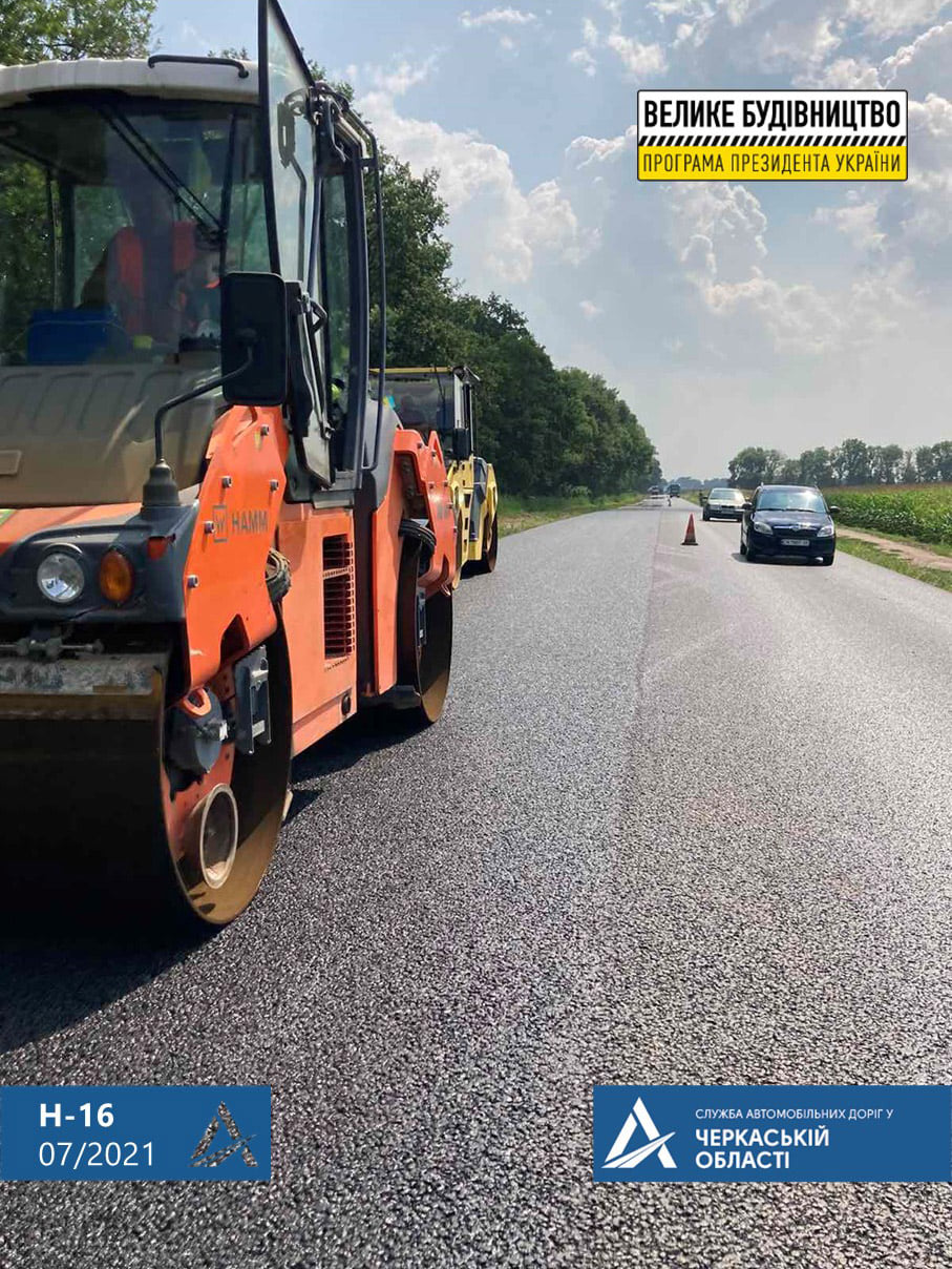Розпочалися роботи із влаштування верхнього, останнього шару асфальтобетонного покриття на обході Черкас на автодорозі Н-16. Вже влаштовано майже 2 км нового асфальтобетонного покриття.