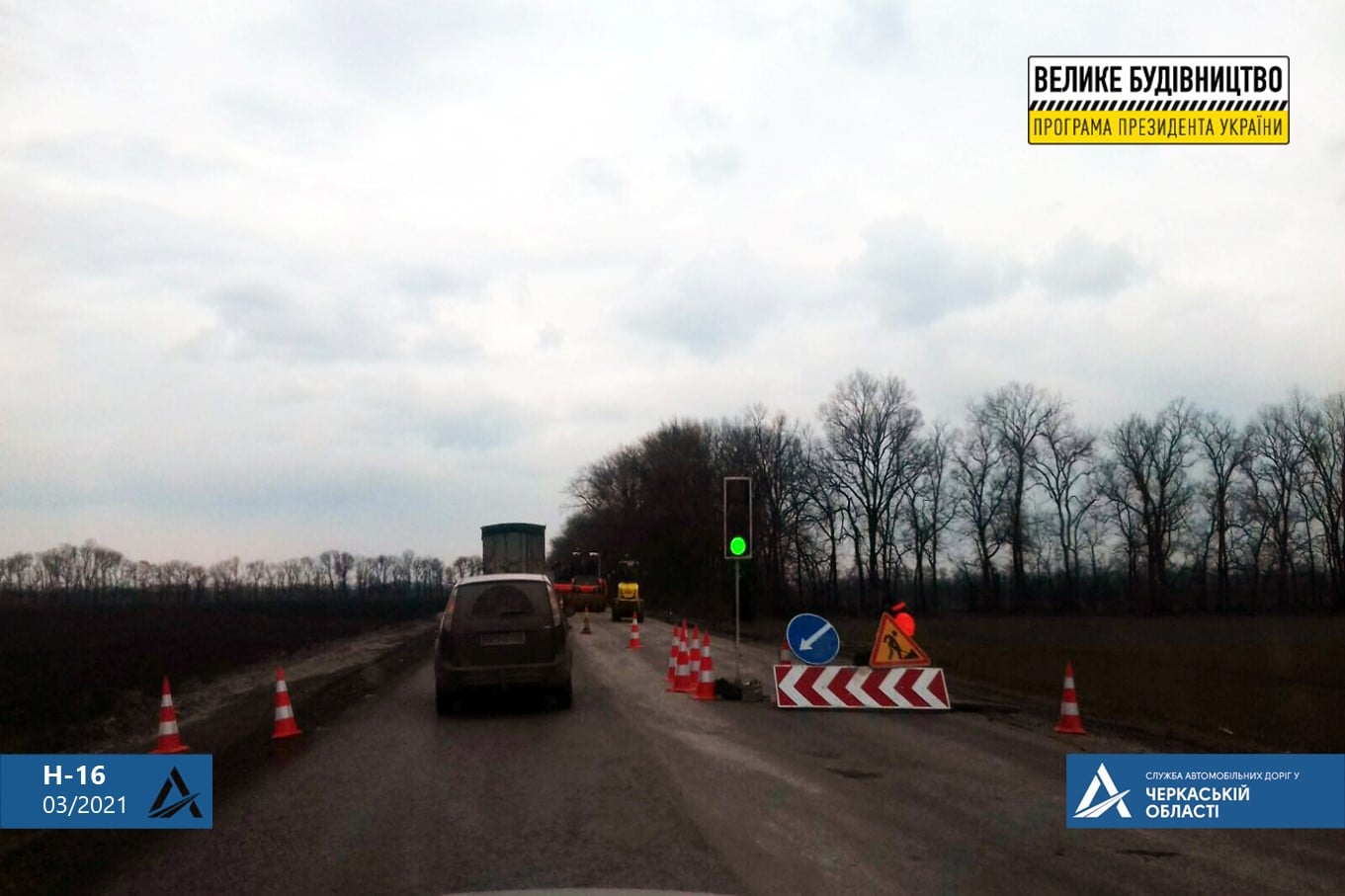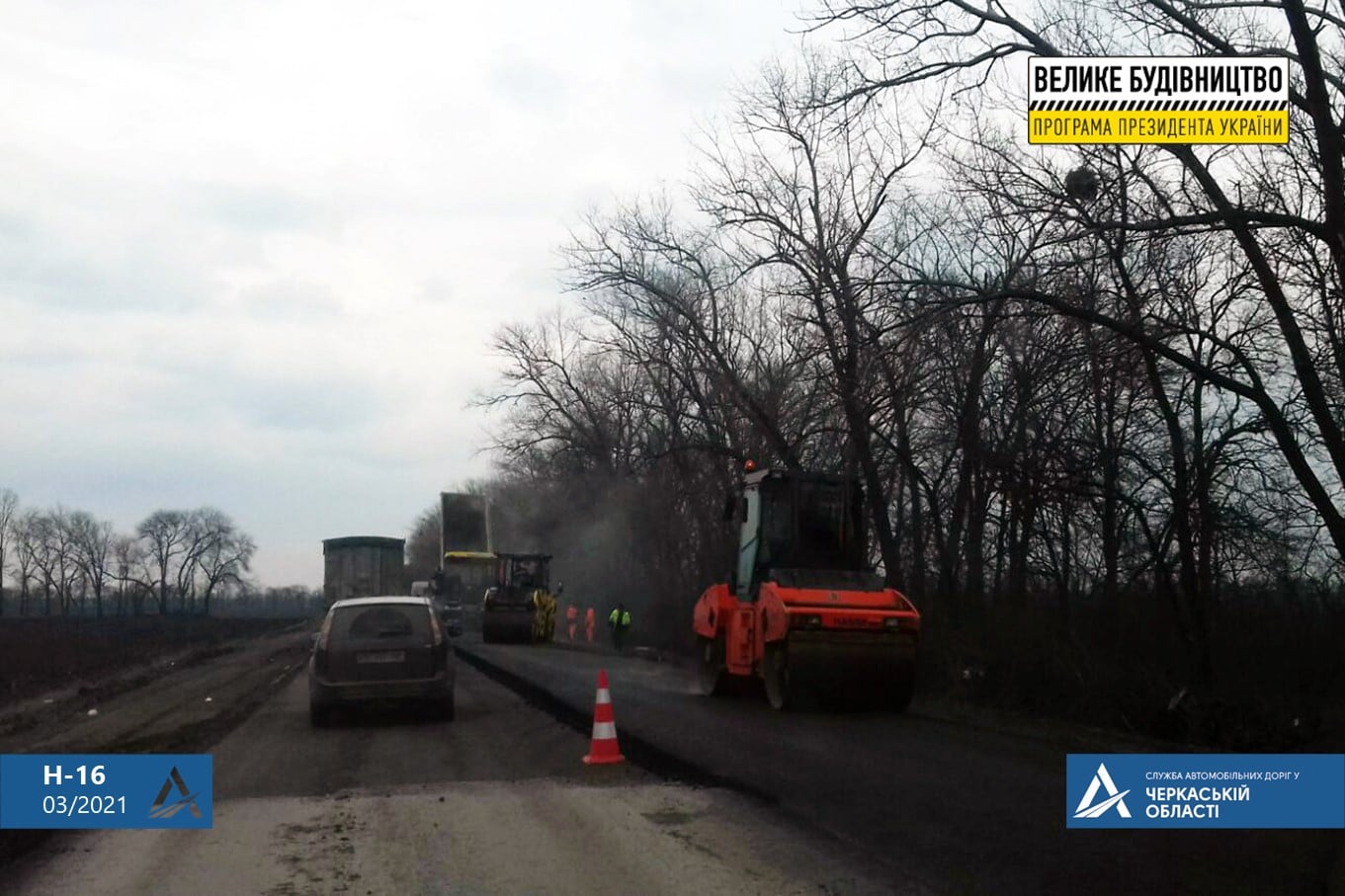 На автомобільній дорозі державного значення Н-16 Золотоноша – Черкаси – Сміла – Умань тривають роботи із відновлення об’їзної дороги Черкас протяжністю понад 12,1 км, починаючи від повороту на село Геронимівка і до дороги у напрямку міста Сміла.