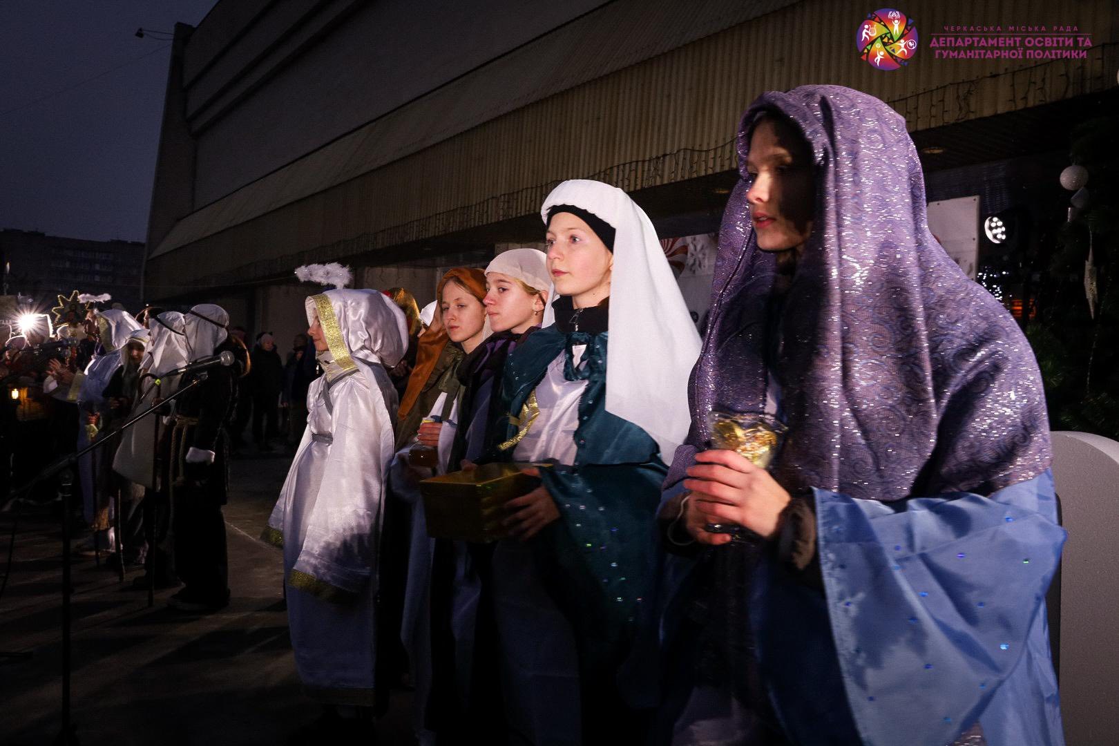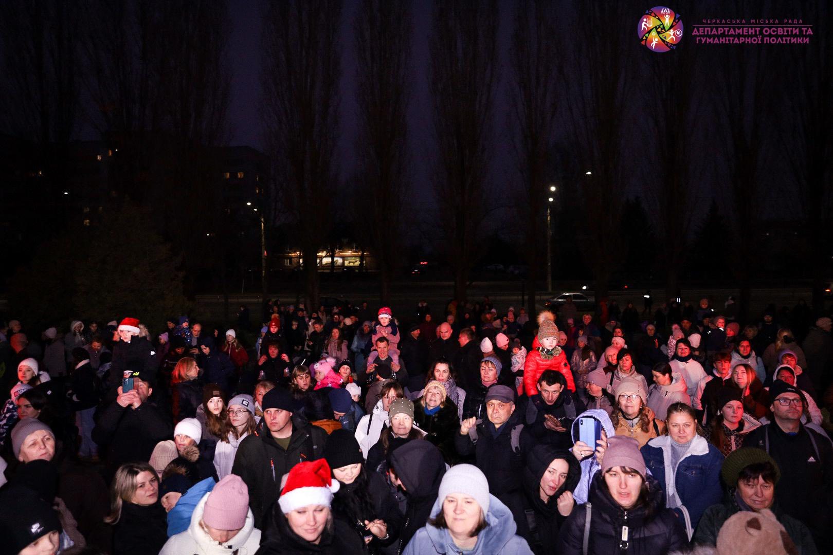 Головною подією вечора стало символічне запалення вогників на новорічно-різдвяній ялинці, яке подарувало присутнім відчуття справжнього зимового дива. Площа Палацу молоді наповнилася світлом, музикою та щирими емоціями, а святкова ялинка в Черкасах стала центром різдвяної атмосфери.