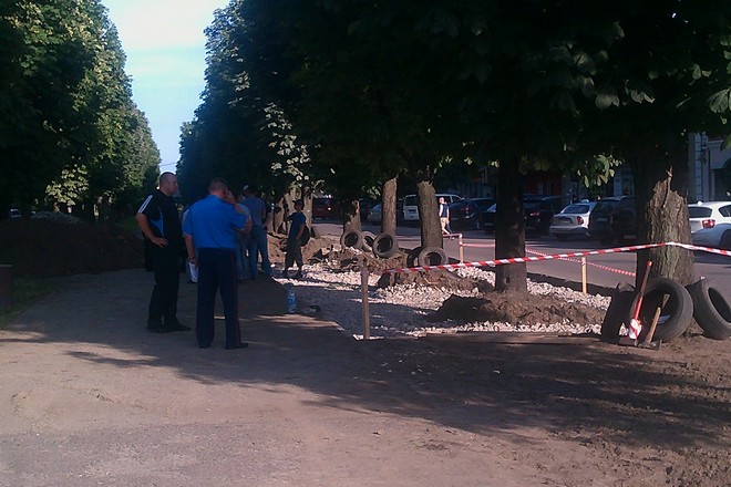 Учора на День Конституції розпочалися активні земляні роботи напроти магазину "Делікат", що в районі Казбету. Роботи велися посеред каштанової алеї бульвару Шевченка, інформує "Кропива".