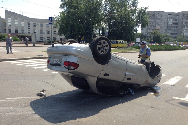 На дорозі біля площі 700-річчя внаслідок ДТП перекинулося авто "Деу Ланос". Як розповіли кореспонденту vikka.ua свідки аварії, водій був нетверезий і зараз його забрали в лікарню.