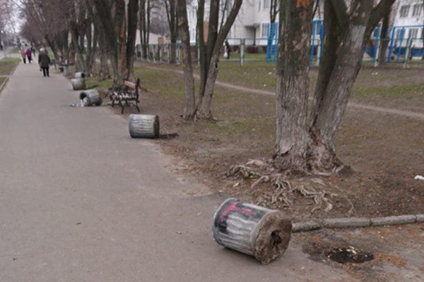 Невідомі перевернули сміттєві урни вздовж алеї біля школи №28, що в Південно-Західному районі міста.