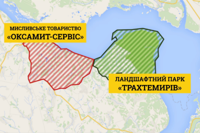 Водночас директор ландшафтного парку "Трахтемирів" Олександр Сіренко переконує: "Оксамит-Сервіс" це не зупиняє. За його словами, деякий час тому впливові мисливці взяли під контроль частину території та встановили там свої підгодовувальні майданчики.