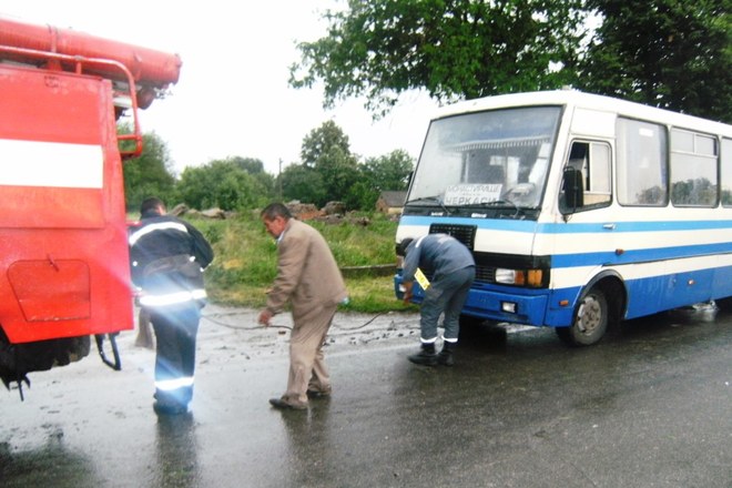 Опинившись на узбіччі, автобус застряг і не міг надалі самостійно продовжувати рух.