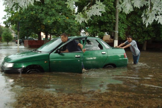 Після закінчення зливи водіям, яким не пощастило, довелось виштовхувати автівки по коліна у воді.
