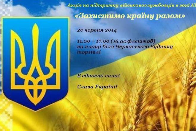 Сьогодні, 20 червня, у Черкасах відбудеться акція на підтримку українських військовослужбовців на сході України в зоні АТО під назвою "Захистимо країну разом".