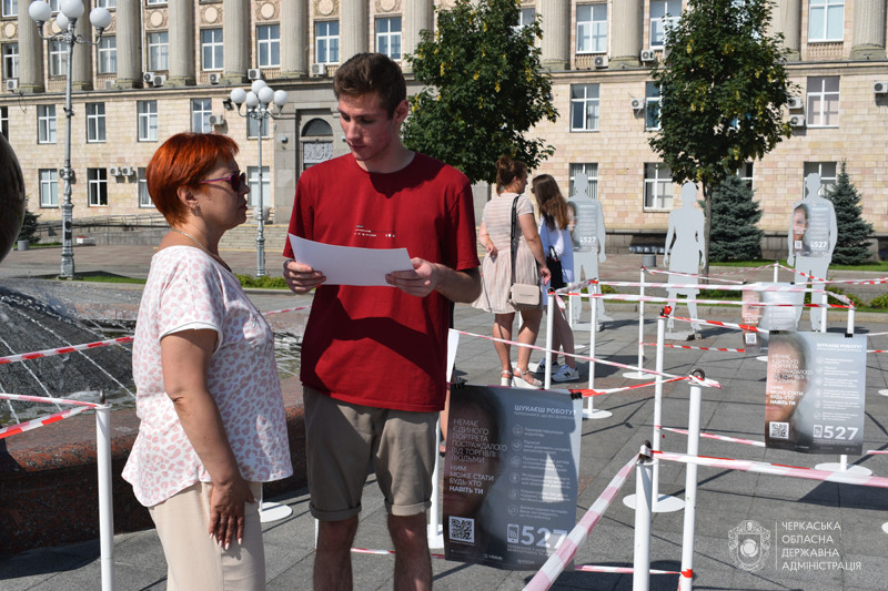 Вчора, 30 липня, в усьому світі відзначали Всесвітній день протидії торгівлі людьми. З цієї нагоди у центрі Черкас пройшла інформаційна акція, яка має на меті поінформувати громадян про небезпеку сексуального, трудового рабства, привернути увагу до цієї проблеми та поширити актуальну інформацію щодо ситуацій, пов’язаних з торгівлею людьми.
