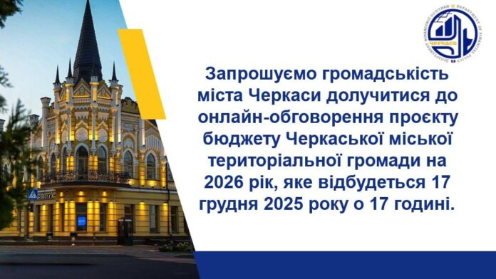 Бюджет Черкас на 2026 рік винесли на публічне онлайн-обговорення, до якого черкащан запрошують долучитися вже 17 грудня 2025 року о 17:00. Формат дозволить кожному жителю громади вплинути на те, яким буде фінансовий план міста наступного року.