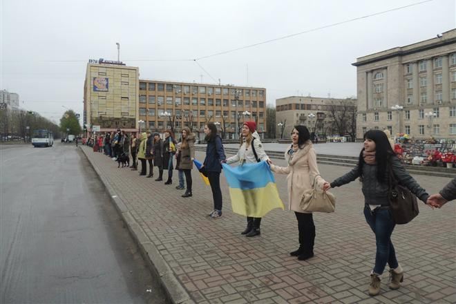 Учора, 12 квітня, близько сотні черкащан різного віку створили живий Ланцюг єднання України. Така акція пройшла одночасно у більшості міст України на підтримку єдності нашої держави та проти розколу і сепаратизму. Зорганізував акцію у Черкасах Володимир Лаврик, пише "Про головне".