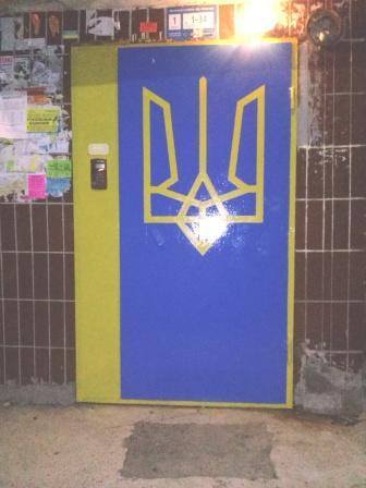 Один з мешканців будинку, що по вул. Благовісній, 469 у Черкасах, розмалював вхід до першого під’їзду в національних кольорах, а на дверях зобразив герб України.