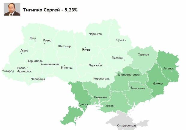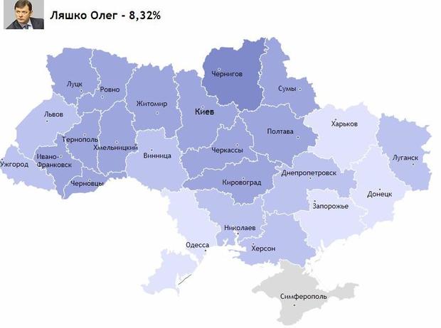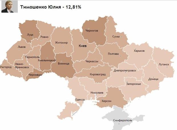 У центральних та західних регіонах кандидати – прихильники європейського вибору України зібрали понад 95 % голосів.