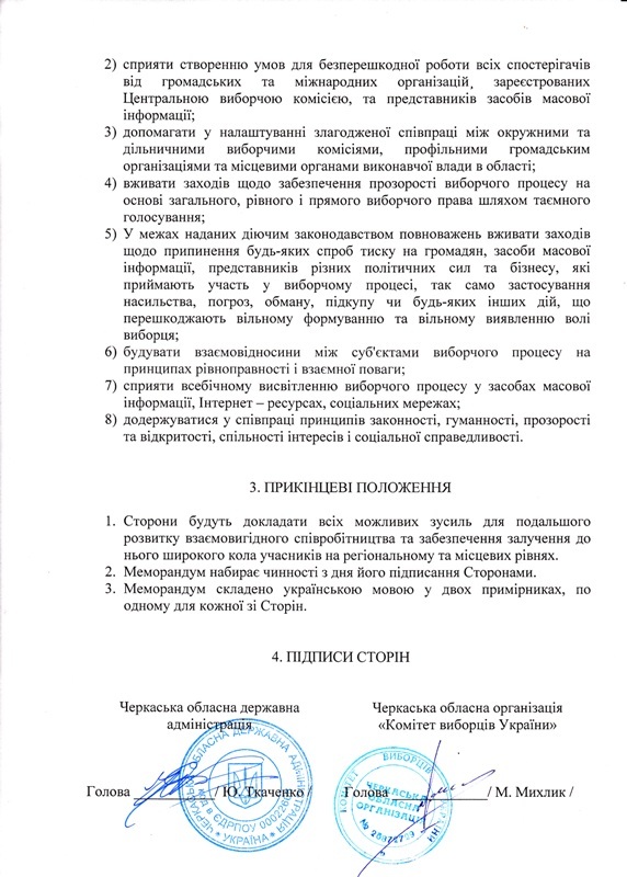Свої підписи під цим документом поставили керівник області Юрій Ткаченко та очільник обласного осередку "Комітету виборців України" Максим Михлик.
