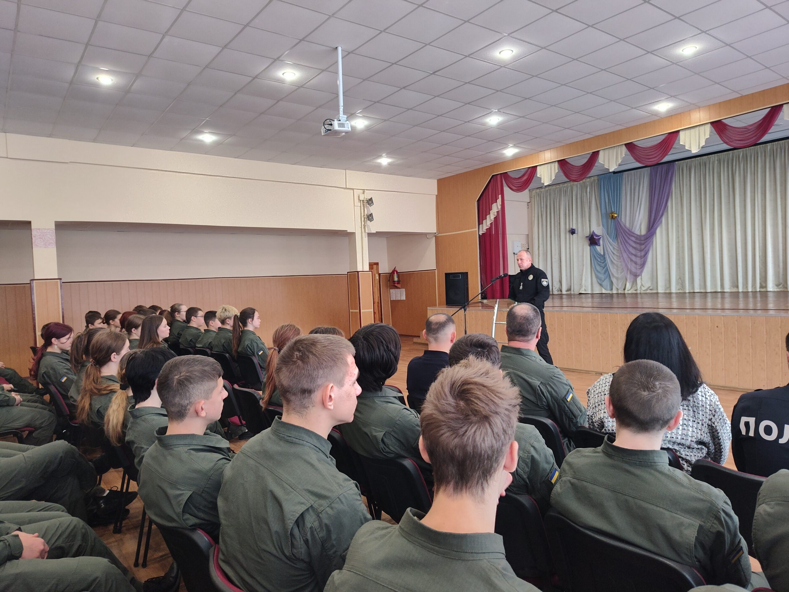 Учні Черкаського ліцею з посиленою військово-фізичною підготовкою ім. Захисників України дізналися більше про структуру нацполіції, напрями її роботи. А головне – які якості важливо в собі виховувати, щоб стати поліцейським.