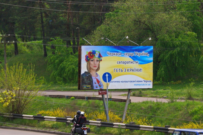 1 травня, патріотичні матусі Черкас відкрили "антисепаратистський" білборд на в’їзді до Черкас із боку Золотоноші. Кошти на нього збирали учасниці форуму "Клуб черкаських мамочок". І ось нарешті ідея, висловлена кілька тижнів тому цілком спонтанно, втілилася в життя, інформує видання "Рідна Черкащина".