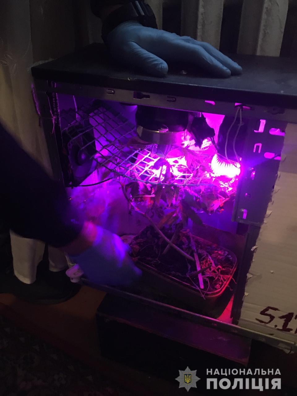 За місцем їхнього проживання поліцейські провели санкціонований обшук. В одного з них виявили та вилучили близько 9 грамів з кристалічною речовиною, схожою на амфетамін, наркотичну речовину, схожу на канабіс, пристрій для вживання канабісу та системний блок, в якому чоловік вирощував рослини коноплі.