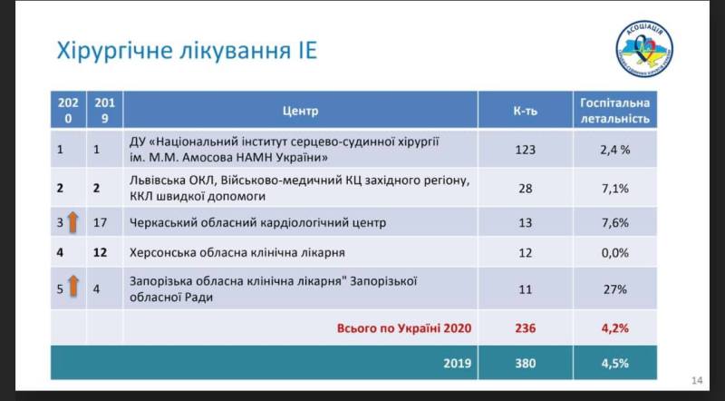 «На онлайн зустрічі Асоціація України підбила підсумки роботи всіх кардіохірургічних клінік та центрів країни, які надають високоспеціалізовану кардіологічну та кардіохірурічну допомогу жителям країни, – додав Олег Журба. – Не зважаючи на всі складнощі, наші лікарі успішно та з хорошими результатами борються із серцево-судинними захворюваннями. Як уже стає традицією, враховуючи минулорічний звіт Асоціації України, Черкащина займає високі позиції у рейтингу кардіохірургічних клінік України».