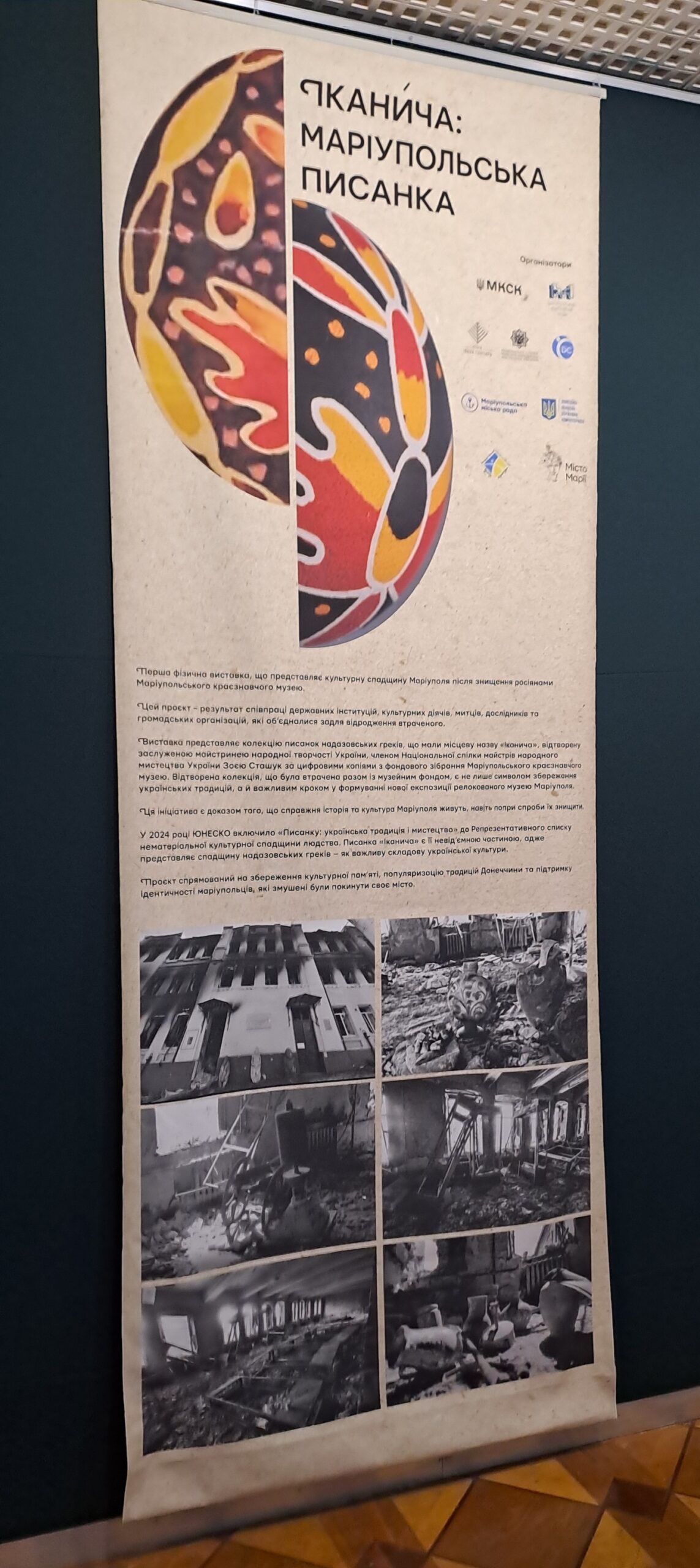 Виставка стала першою фізичною експозицією Маріупольського краєзнавчого музею після його знищення внаслідок російської агресії. Її центральним елементом виступає колекція унікальних писанок «Іканича», що були знищені разом із музейним фондом у 2022 році, але відтворені на основі цифрових копій заслуженою майстринею народної творчості України Зоєю Сташук.
