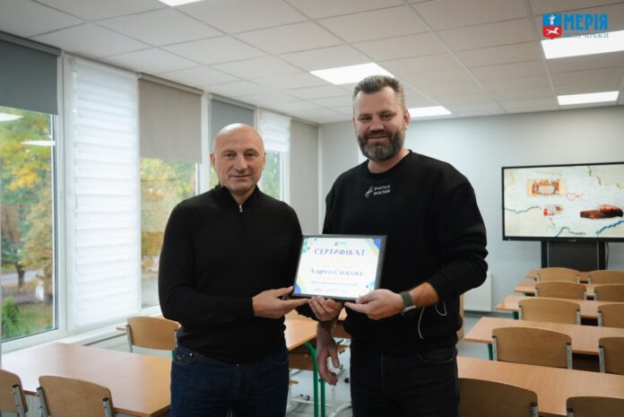 «Вручив йому сертифікат на 50 тисяч гривень — для розвитку навчального простору та придбання технічного обладнання», – відзначив міський голова.
