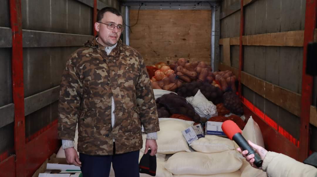 У кількатонній вантажівці – майже 10 тонн овочів, 3 тонни цукру, борошна, консервація та молочна продукція.