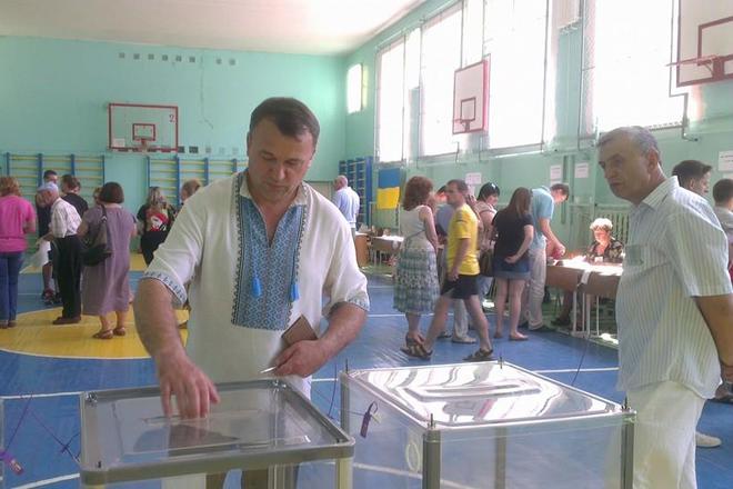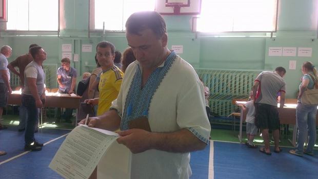 Народний депутат по канівському округу Леонід Даценко вже віддав свій голос. На дільницю він прийшов у вишиванці.