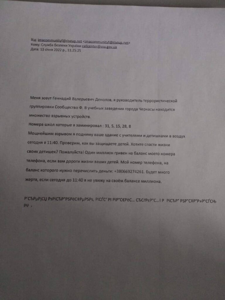 Нагадаємо, сьогодні також з’явилася інформація про замінування торгових центрів у Черкасах. Учора, 12 січня. колективи всіх шкіл міста Черкаси теж евакуювали через хибне повідомлення про вибухівку.