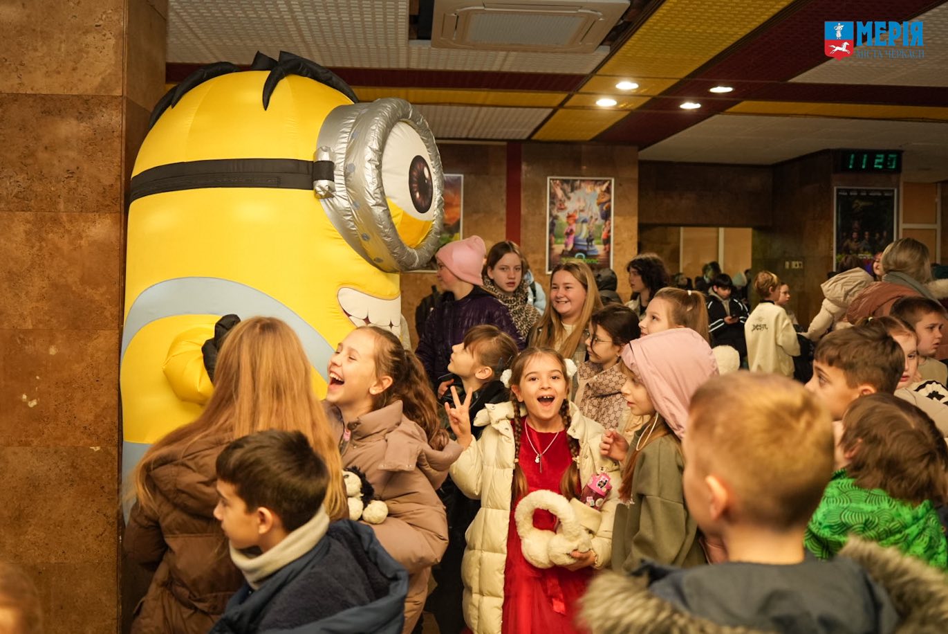 У кінотеатрі «Україна» для них підготували різдвяну атмосферу: перегляд мультфільму, зустріч зі Святим Миколаєм, солодкі подарунки, фотозони.