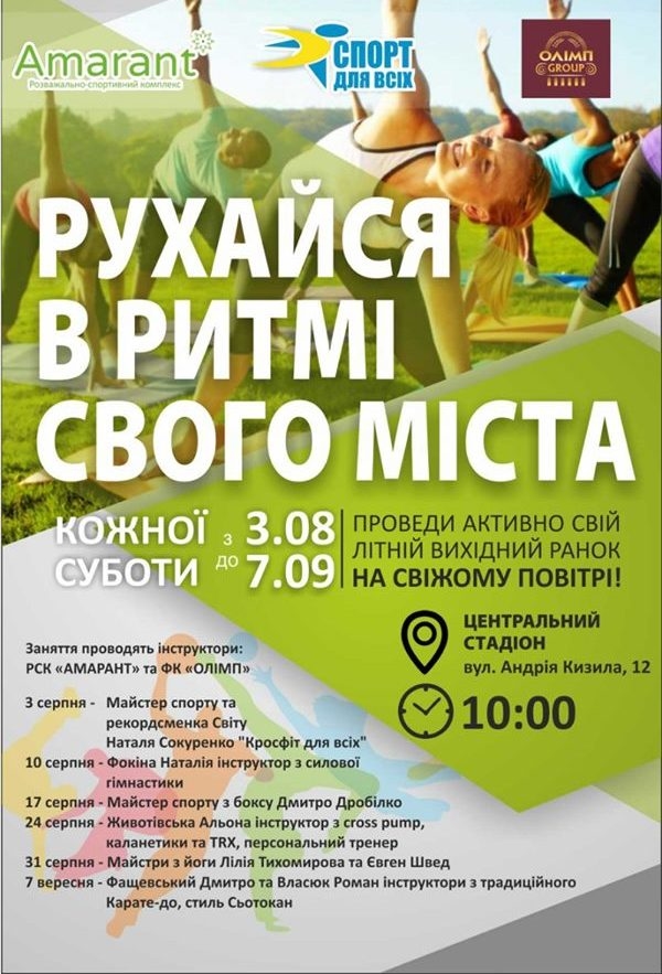 Організовують їх на Центральному стадіоні міста з 3 серпня по 7 вересня. Всі бажаючі о 10:00 можуть безкоштовно відвідати майстер-класи за участі інструкторів. Зазначимо, що на першу "Руханку" прийшли понад 100 містян різного віку.