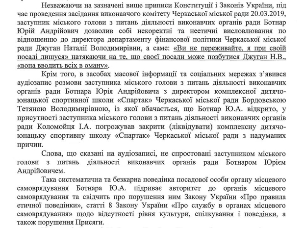 Нагадаємо, напередодні сайт vikka.ua писав про намір черкаського обранця, де він наголошував про невиконання заступником міського голови статей закону України.
