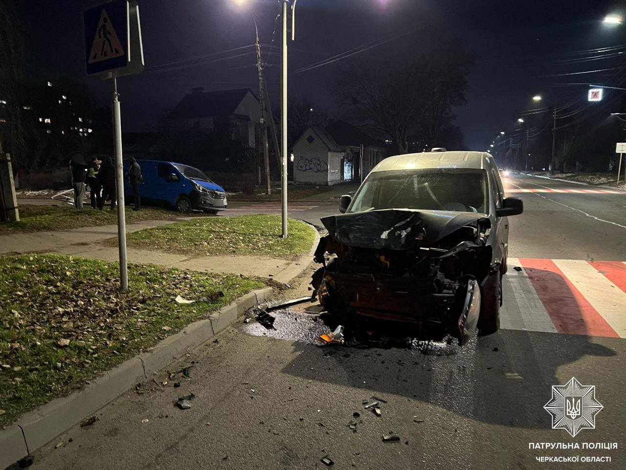 За попередніми даними, водій Renault Trafic, рухаючись вулицею Праведниці Шулежко, не надав переваги в русі автомобілю Volkswagen Caddy, що рухався головною дорогою, і здійснив зіткнення з ним. Після цього водій Renault не зміг зупинити транспортний засіб, внаслідок чого здійснив наїзд на опору дорожнього освітлення та дорожні знаки.