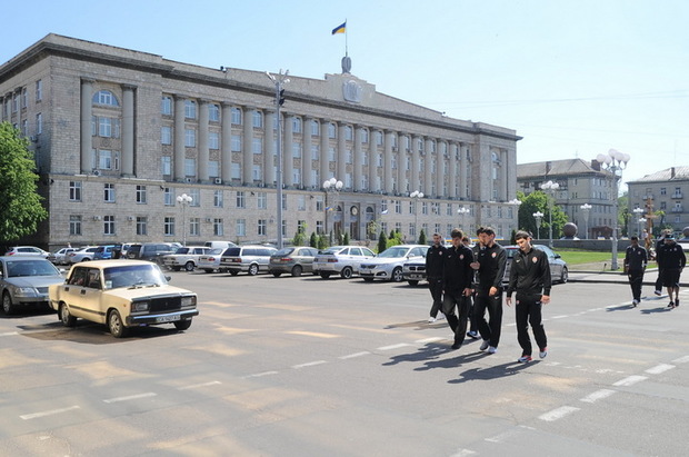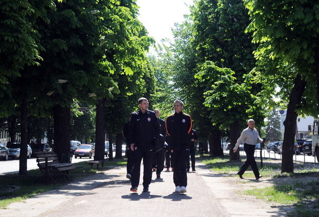 За кілька годин до початку матчу "Славутич" – "Шахтар" донецькі футболісти побували на традиційній прогулянці. Цього разу променад здійснювали Черкасами. Настрій у гравців бойовий – попереду відповідальна гра 1/2 Кубку України. Про це Інформують на офіційному сайті "Шахтаря"