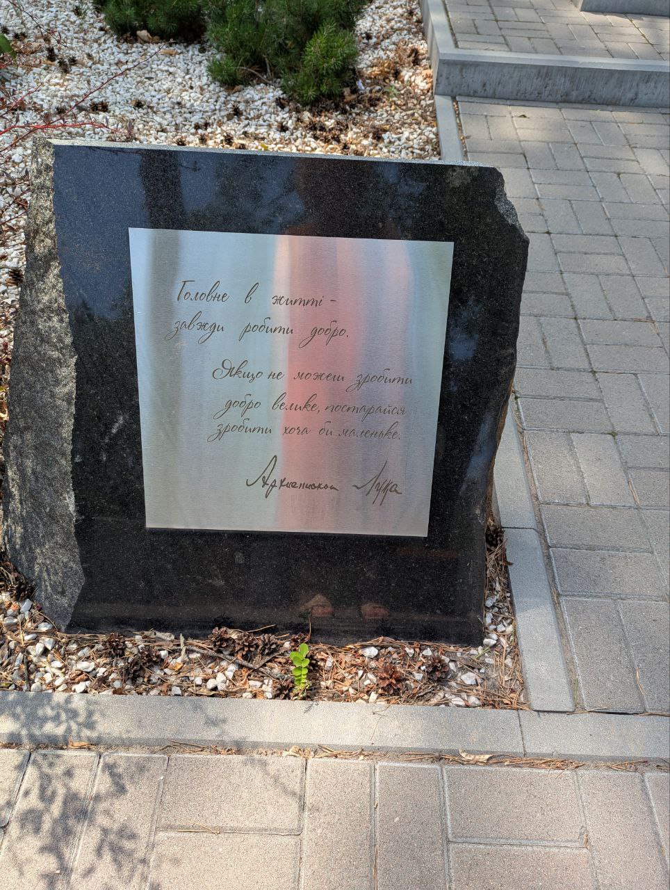 Інший, як символ віри, знаходиться біля Свято-Михайлівского собора і освячений в 2016 році. Автори: скульптор Микола Крижанівський, архітектор Василь Дмитренко. Поряд також знаходяться і стели його батьків, котрі похоронені на кладовищі, яке колись тут було.