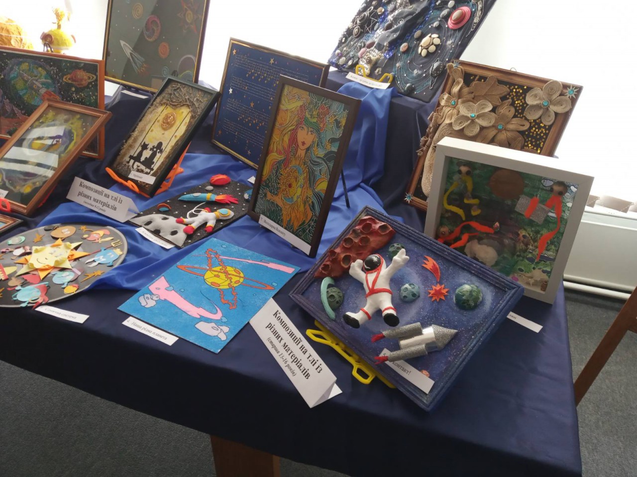 Усі роботи об’єднані інтересом до космосу й відтворюють уявлення про космос різними засобами мистецтва: образотворчим, декоративно-ужитковим, літературним, фото-, відео- та кіномистецтвом, комп’ютерною графікою.