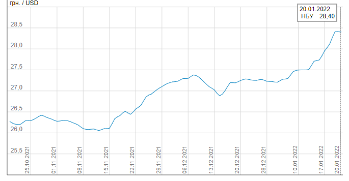 Через загрозу вторгнення іноземці продають облігації внутрішньої держпозики (боргові папери України у гривні), а за виручені кошти купують долари та виводять їх з України. За кілька тижнів січня портфель ОВДП в іноземців скоротився на 6,4 млрд грн. У цих умовах гривня почала плавне, але впевнене зниження.