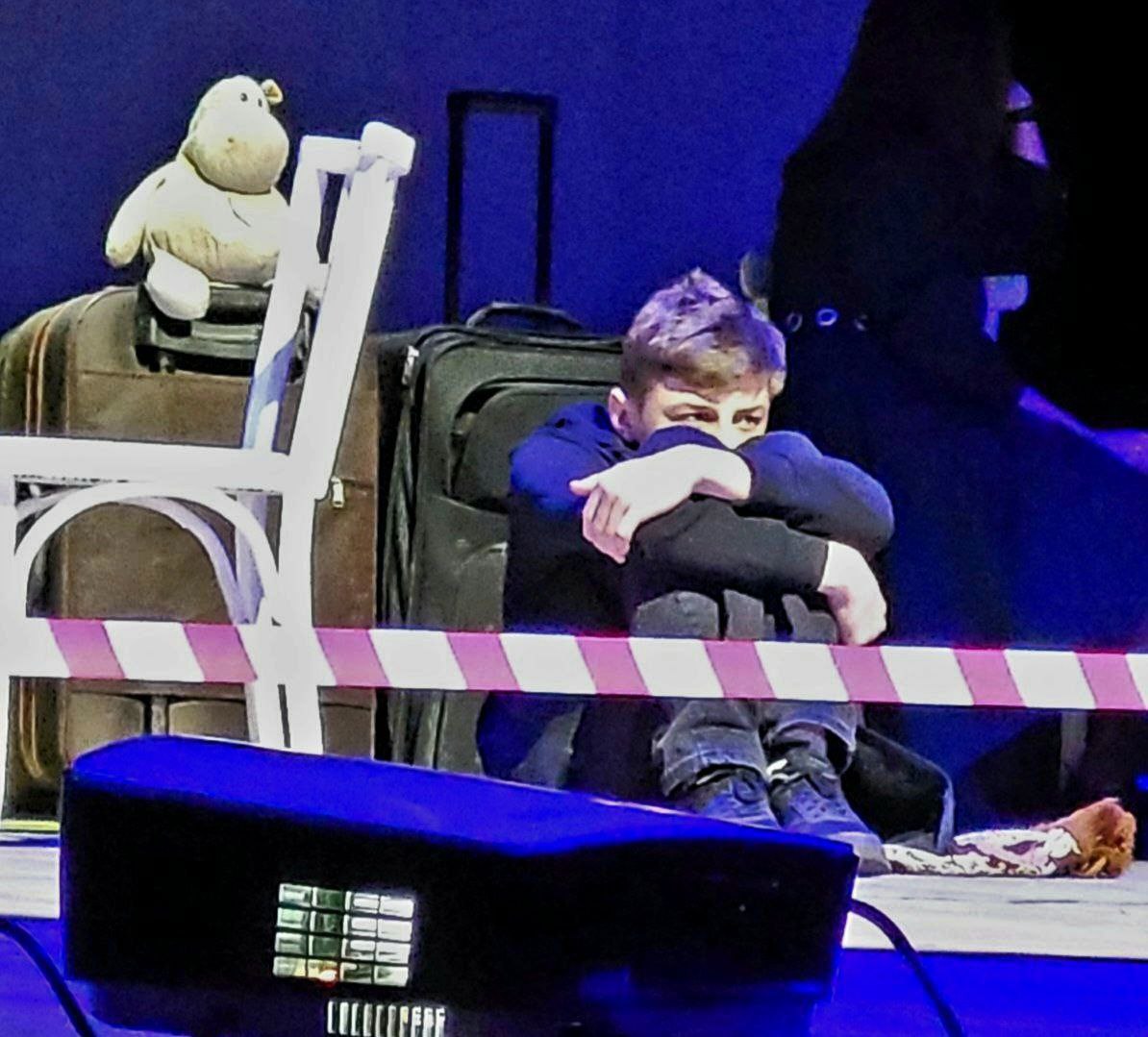 На сцену виходять актори Донецького академічного обласного драматичного театру з Маріуполя. Вони заходять у відведений білими лініями умовний простір — епіцентр трагедії 16 березня 2022 року, коли бомба російських окупантів знищила будівлю драмтеатру, що став прихистком для сотень мирних жителів. У цьому просторі їм доводиться знову проживати той день. І не просто його згадувати — а переживати тілом, голосом, паузами, поглядом.
