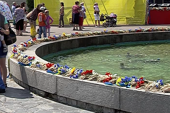 15 працівників Черкаського обласного художнього музею сплели гігантський вінок. Робота кипіла кілька днів.
