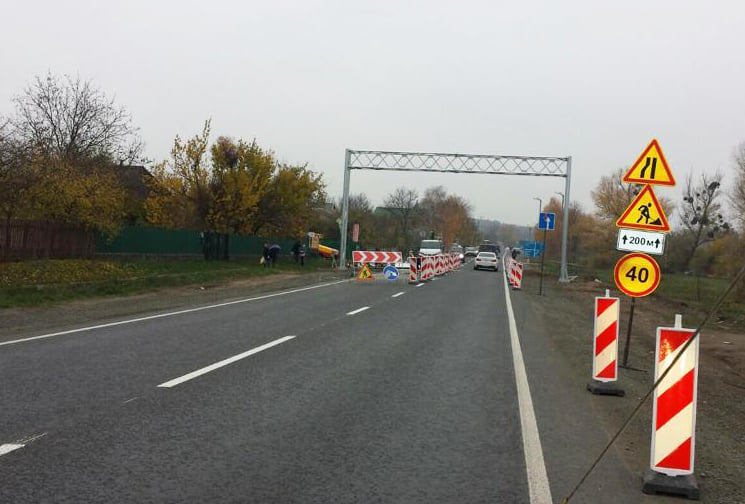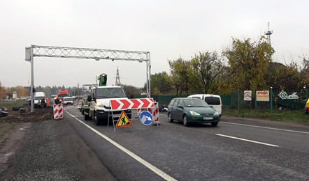 Вже монтується перший майданчик на ділянці автодороги Н-01 Київ – Знам’янка на в’їзді в місто Сміла, біля перетину автодоріг Н-01 та Н-16. Підрядним підприємством влаштовані фундаменти під габаритні ворота та триває монтаж цих воріт.