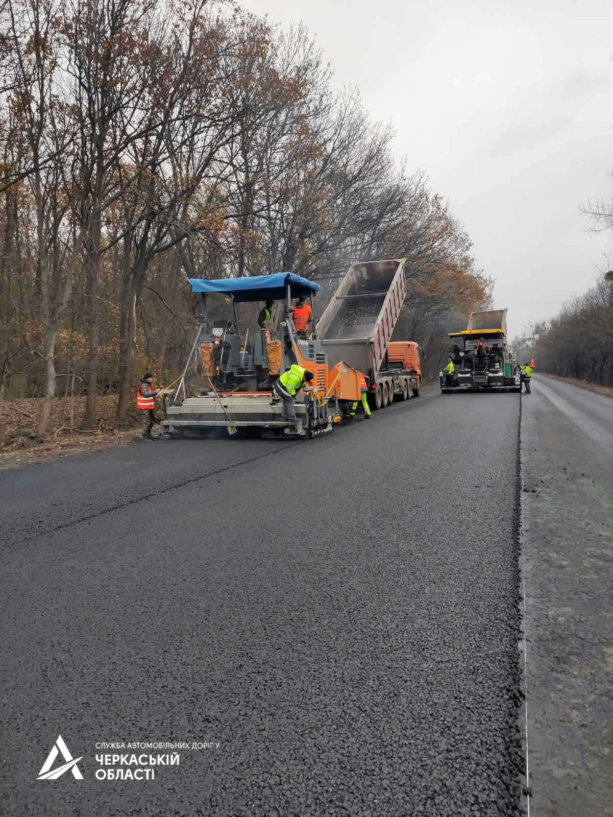 На автодорозі міжнародного значення М–12 Стрий – Тернопіль – Кропивницький – Знам’янка в Уманському районі розпочали влаштування верхнього шару асфальтобетонного покриття.