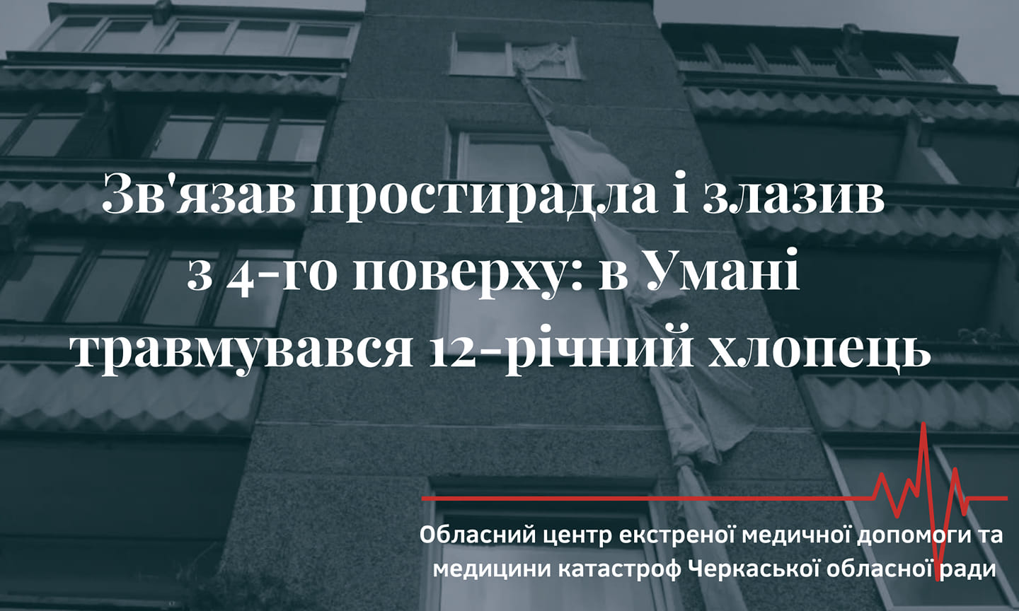 Щоб потрапити на вулицю, підліток вирішив зв’язати докупи простирадла та спуститися на них із вікна четвертого поверху. Коли вже почав злазити, то зірвався до низу. Медики оглянули хлопця та доправили його до Уманської міської лікарні з можливим переломом гомілки.