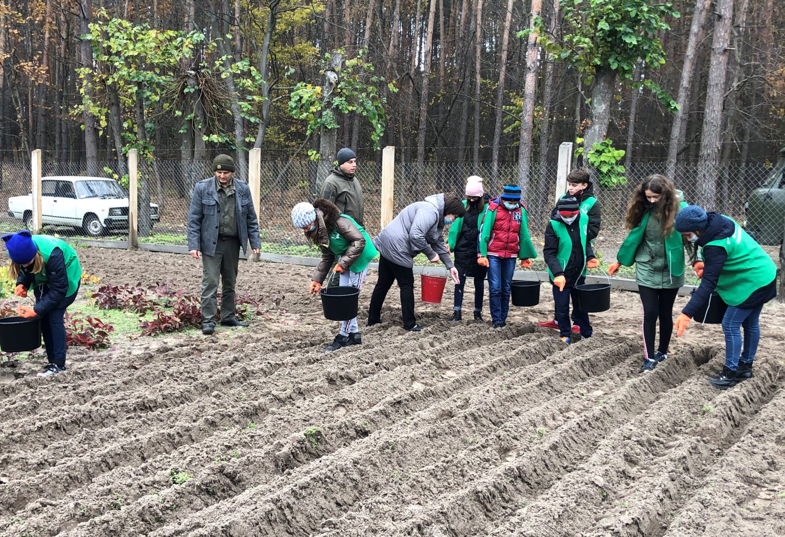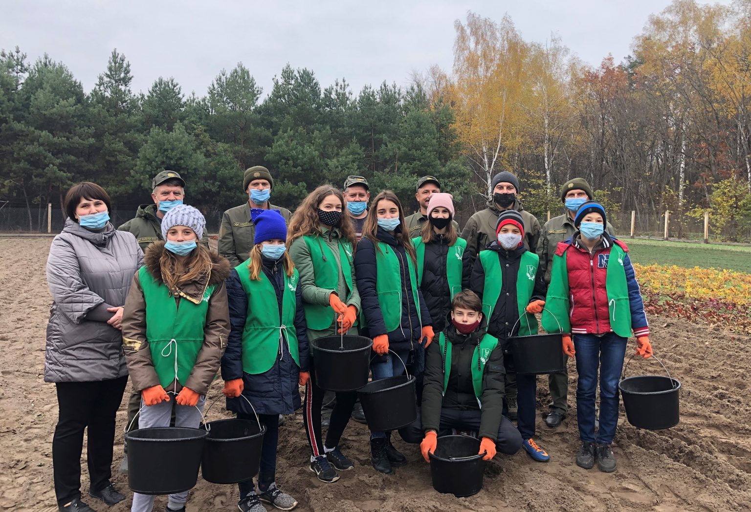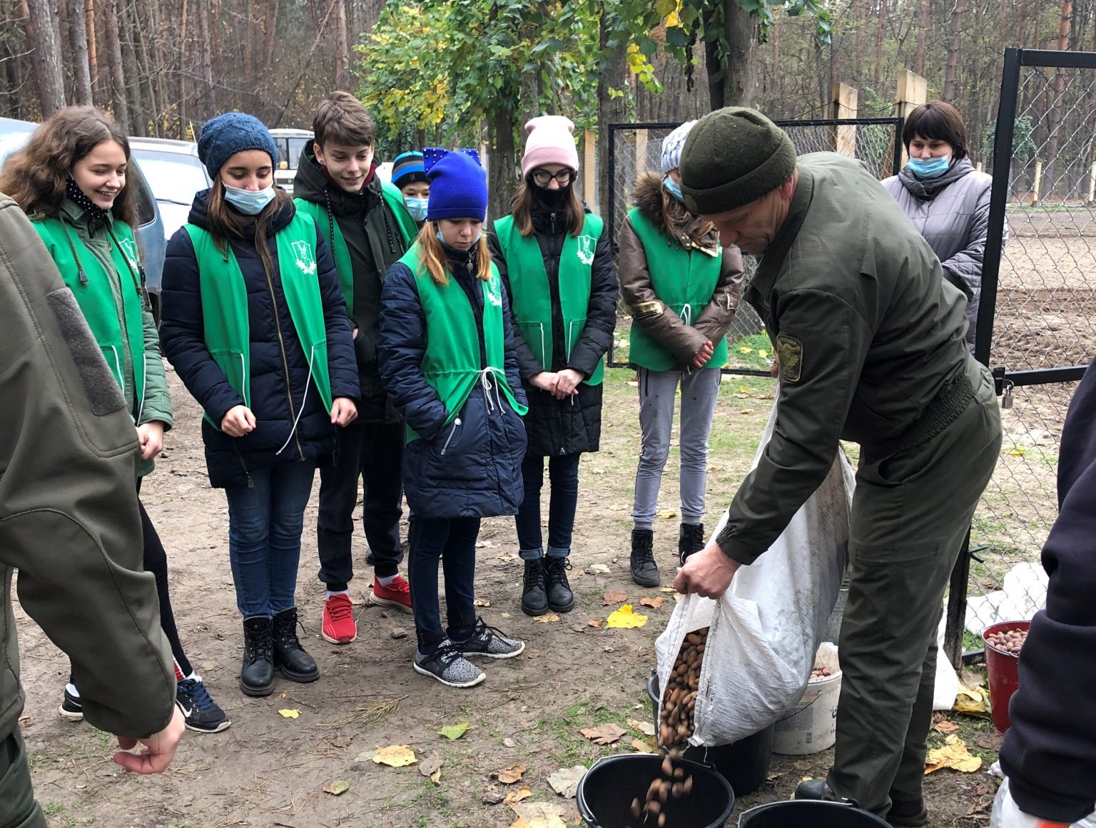По завершенню перейшли до висівання лісового насіння у розсадник. Після інструктажу всі разом учні шкільного лісництва та їхня керівниця, з лісівниками висіяли 500 кілограмів жолудя дуба звичайного, 200 кілограмів жолудя дуба північного та 200 кілограмів горіха чорного. Загалом засіяли пів гектара розсадника.