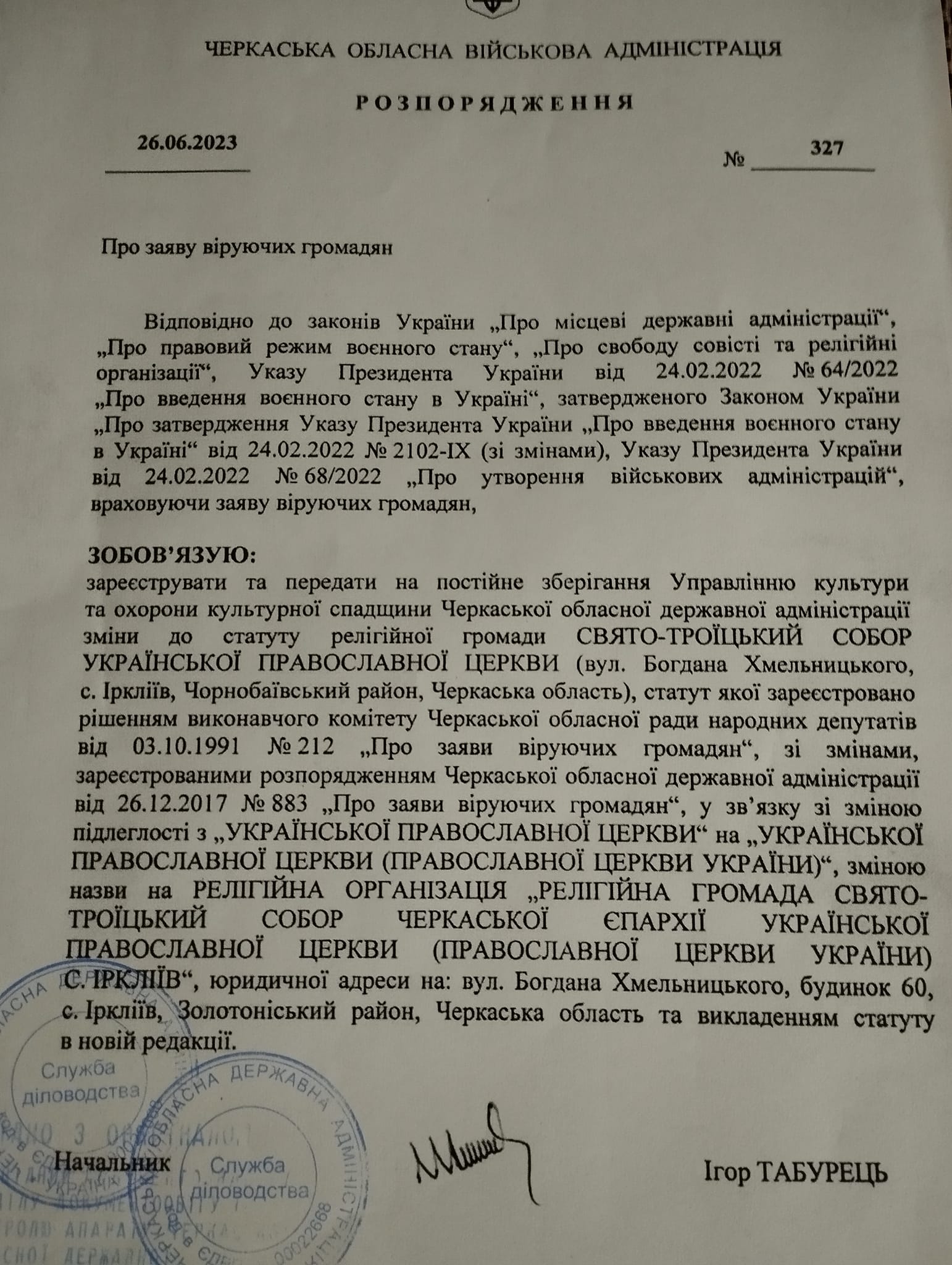 В Іркліївській громаді, що в Золотоніському районі, зареєстрували громаду ПЦУ. Були внесені відповідні зміни, а тож зареєстрований статут. Документи оприлюднені на сторінці депутата Іркліївської ради Ліни Найди.