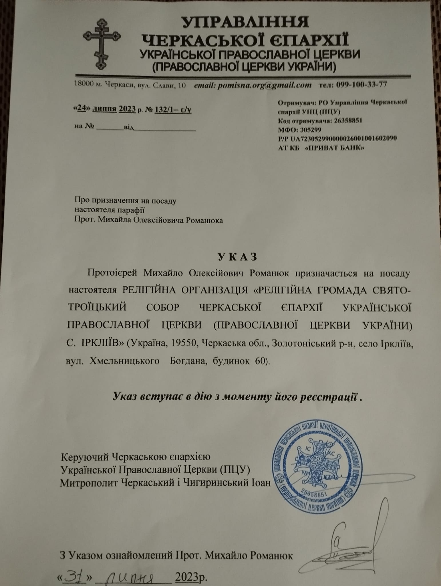 В Іркліївській громаді, що в Золотоніському районі, зареєстрували громаду ПЦУ. Були внесені відповідні зміни, а тож зареєстрований статут. Документи оприлюднені на сторінці депутата Іркліївської ради Ліни Найди.