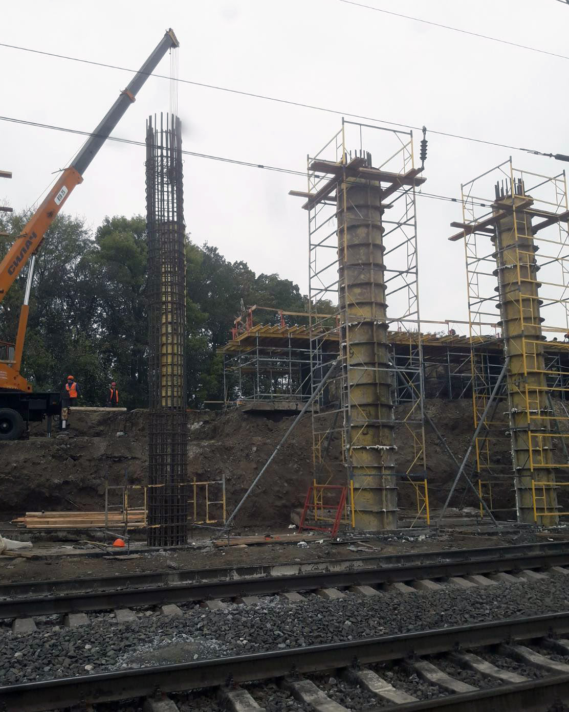 Проведено демонтаж старої будови шляхопроводу, збудованого 58 років тому, завершено бурові роботи із влаштування буронабивних паль, ростверків. Завершуються роботи із влаштування опор майбутнього шляхопроводу. Розпочалися роботи із влаштування ригелів.