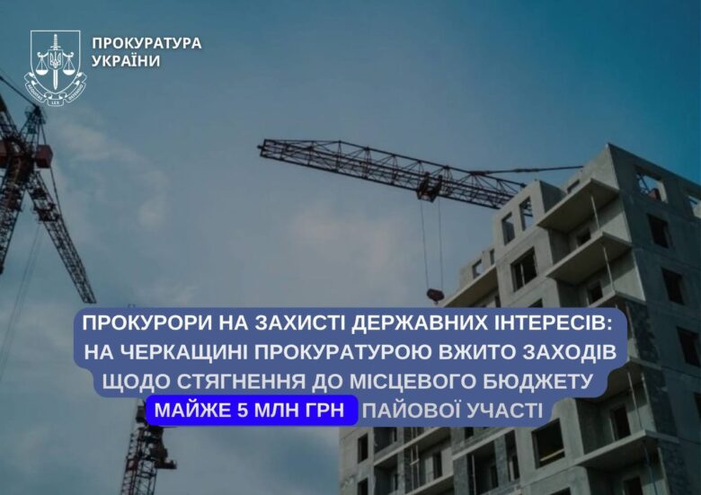 Черкаська прокуратура вжила заходів щодо захисту державних інтересів та стягнення до місцевого бюджету майже 5 млн грн пайової участі. Про це повідомляє Черкаська обласна прокуратура.