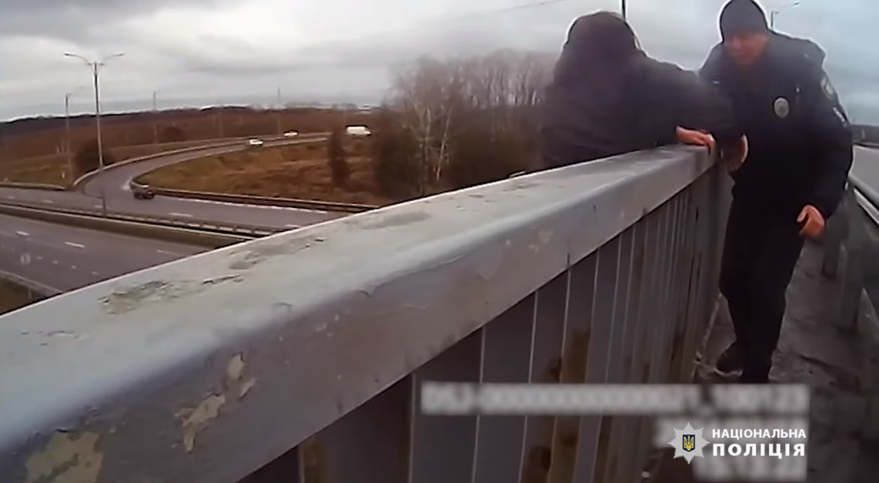 “Ми, разом із перехожим, підійшли до жінки, щоб утримати її та не дати їй зірватися з мосту. Далі ми допомогли їй перебратися через огорожу та доставили до лікарні”, — повідомили поліцейські.