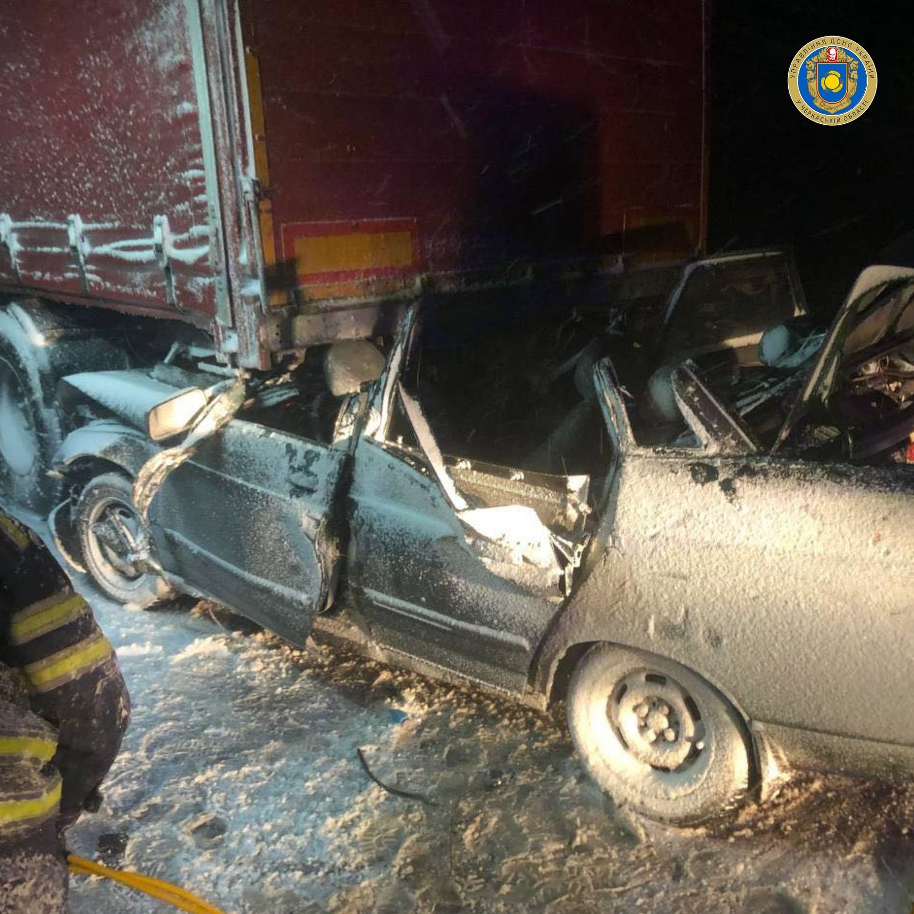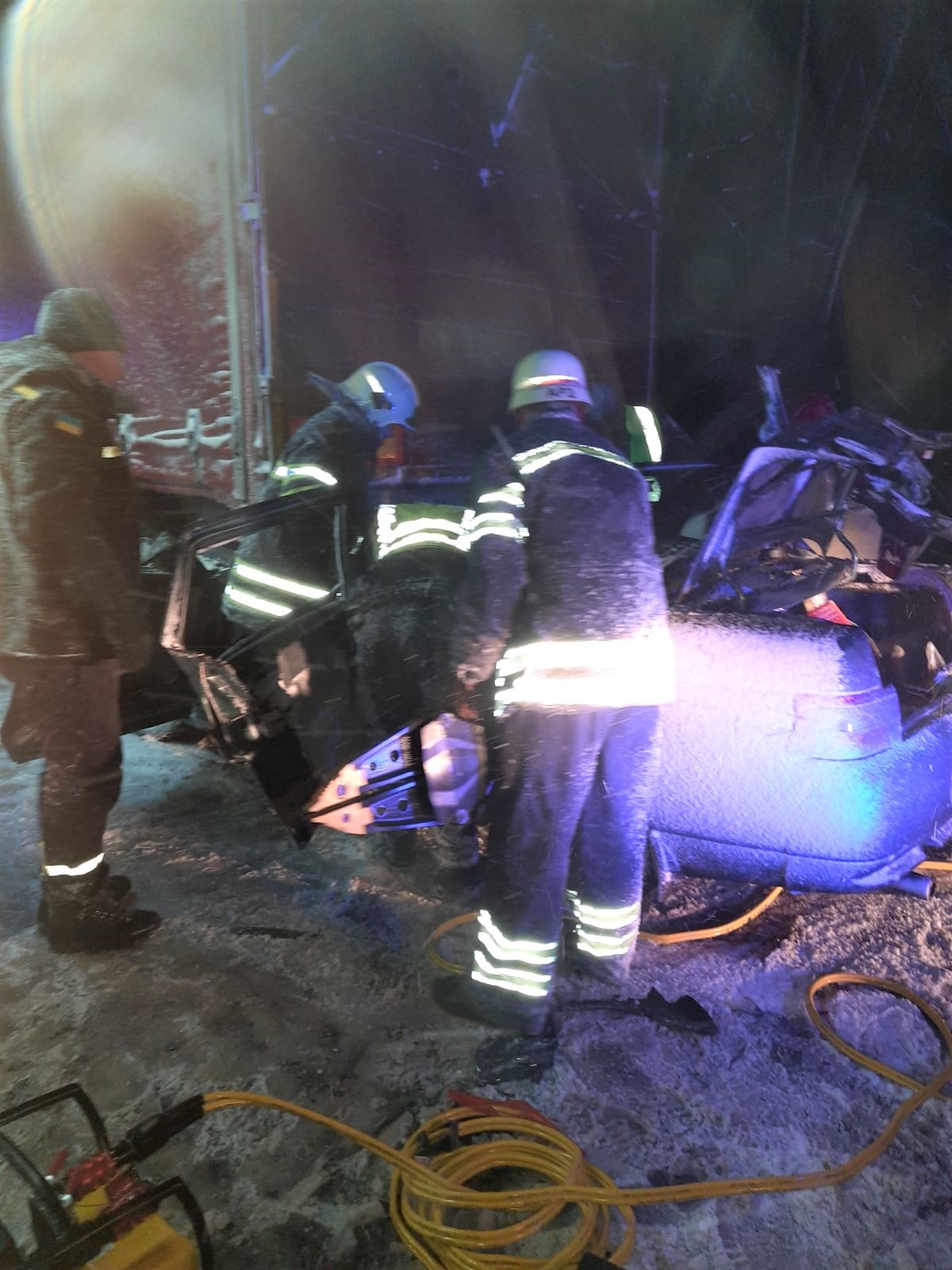 За попередніми даними, водій легковика «ВАЗ» не впорався із керуванням, не обрав безпечної швидкості та заїхав під вантажівку «DAF», що їхала попереду. Внаслідок цього у машині затисло трьох осіб.